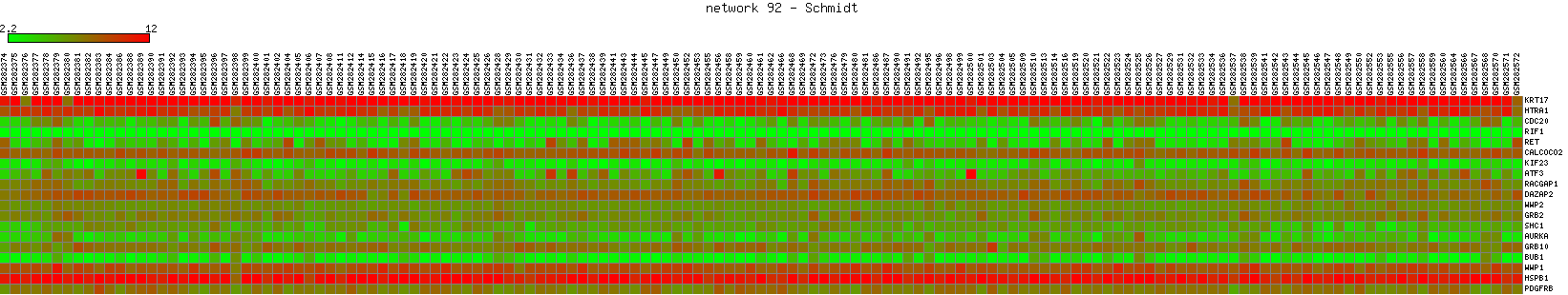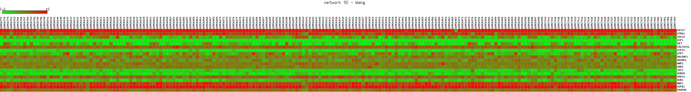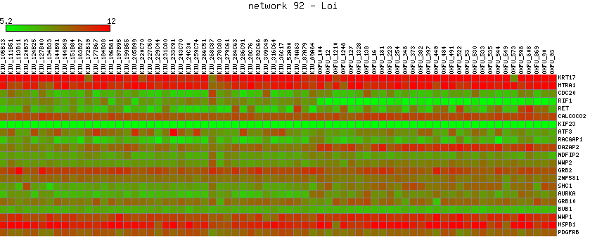 Expression data for subnetwork 92 in each dataset
